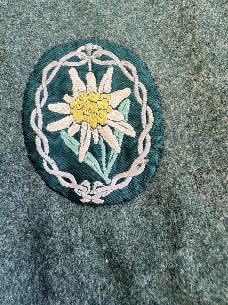 The greatcoat has rank insignia (Obergefreiter) and a “Edelweiss) cloth badge from the Gebirgsjäger units.