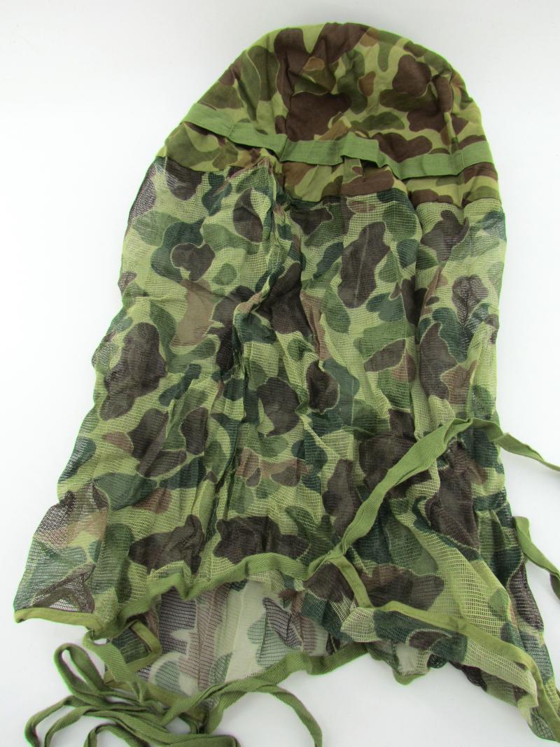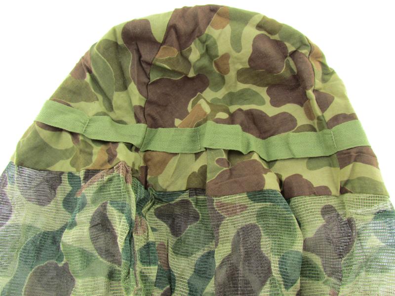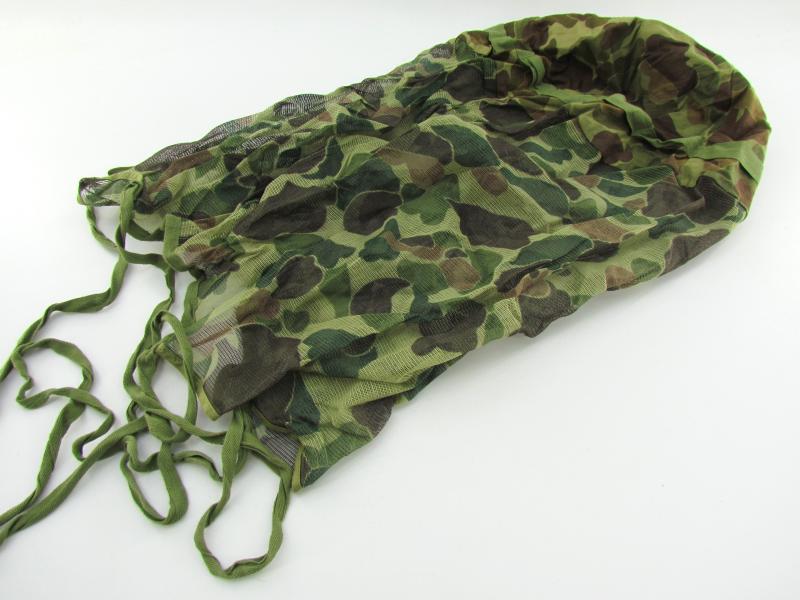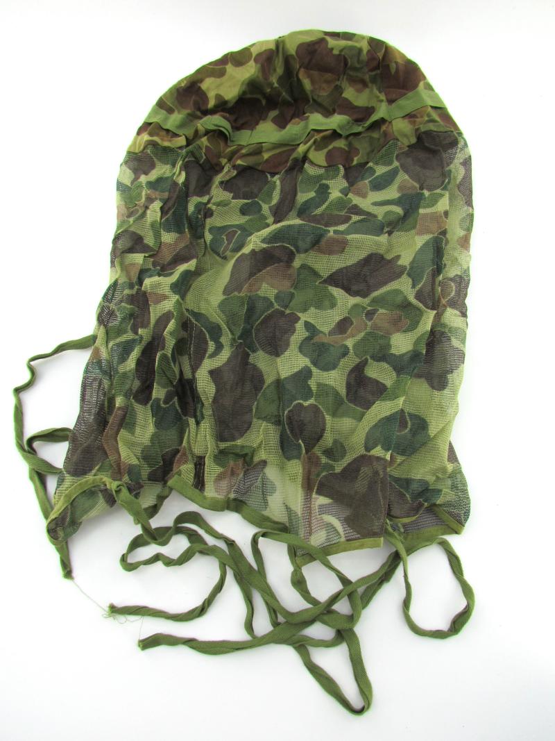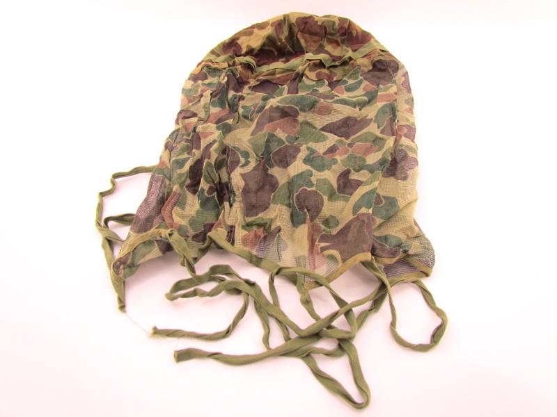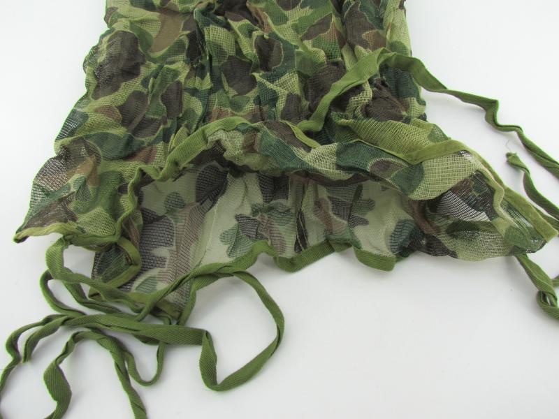Original World War 2 USMC Camouflage Mosquito Net Helmet Cover (Type B) as worn by US Marine Corps members over their M1 Helmets. original mosquito net in mint and unissued condition!