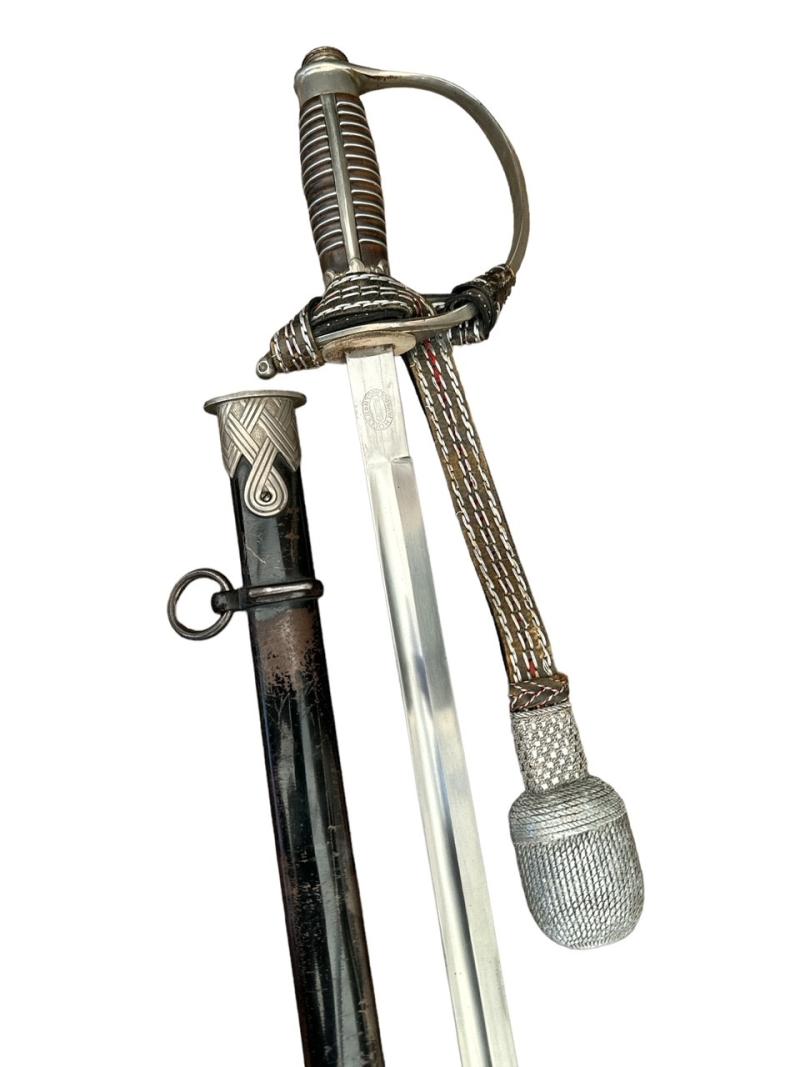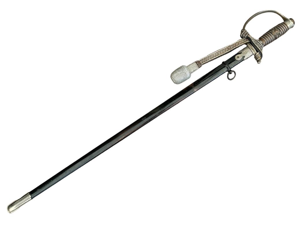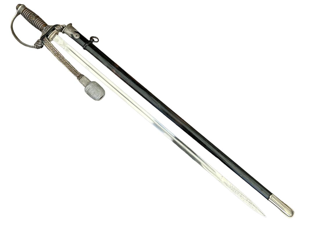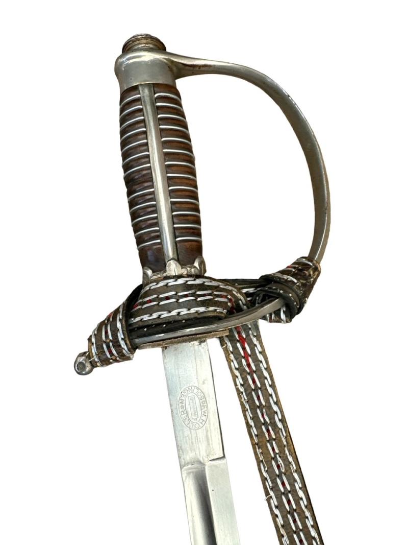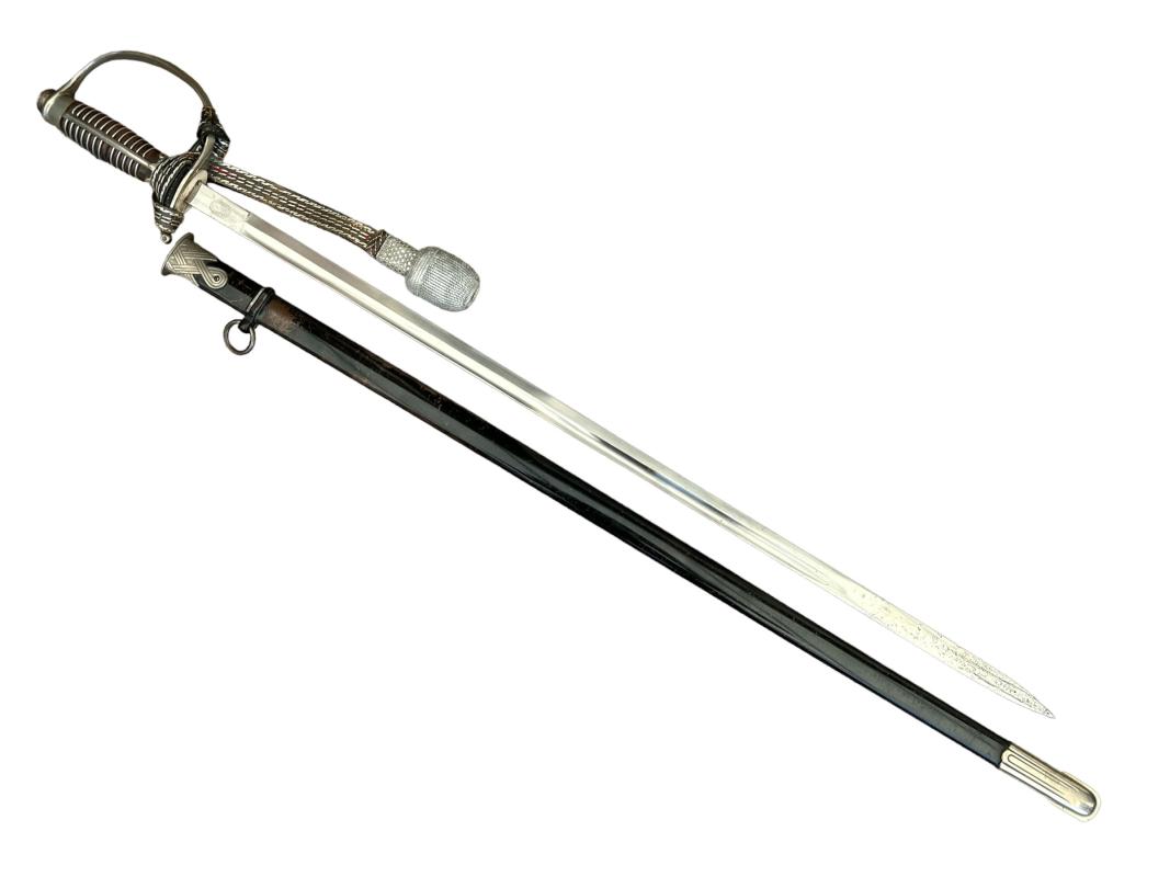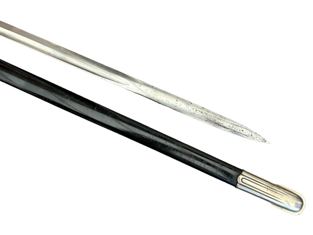 The Sword is complete with its original scabbard, which retains nearly all of the original glossy black enamel paint finish