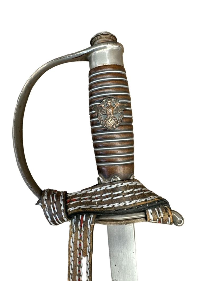 The Polizei grip eagle is intact and shows only light wear. The handle is complete with sword Portepee that is also excellent.