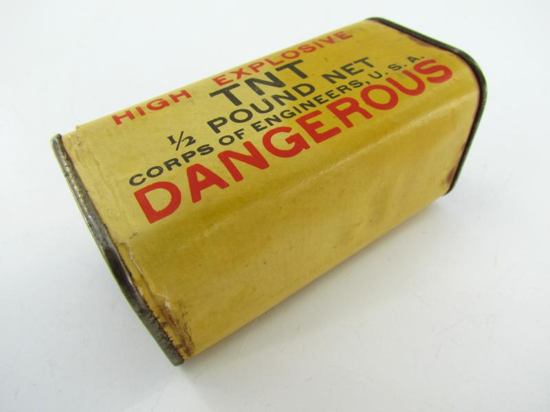 In a very good condition a US WW2 Empty TNT Explosive Package. The package could hold 0,5 pounds of TNT. The package is complete empty and very nice for display purposes!