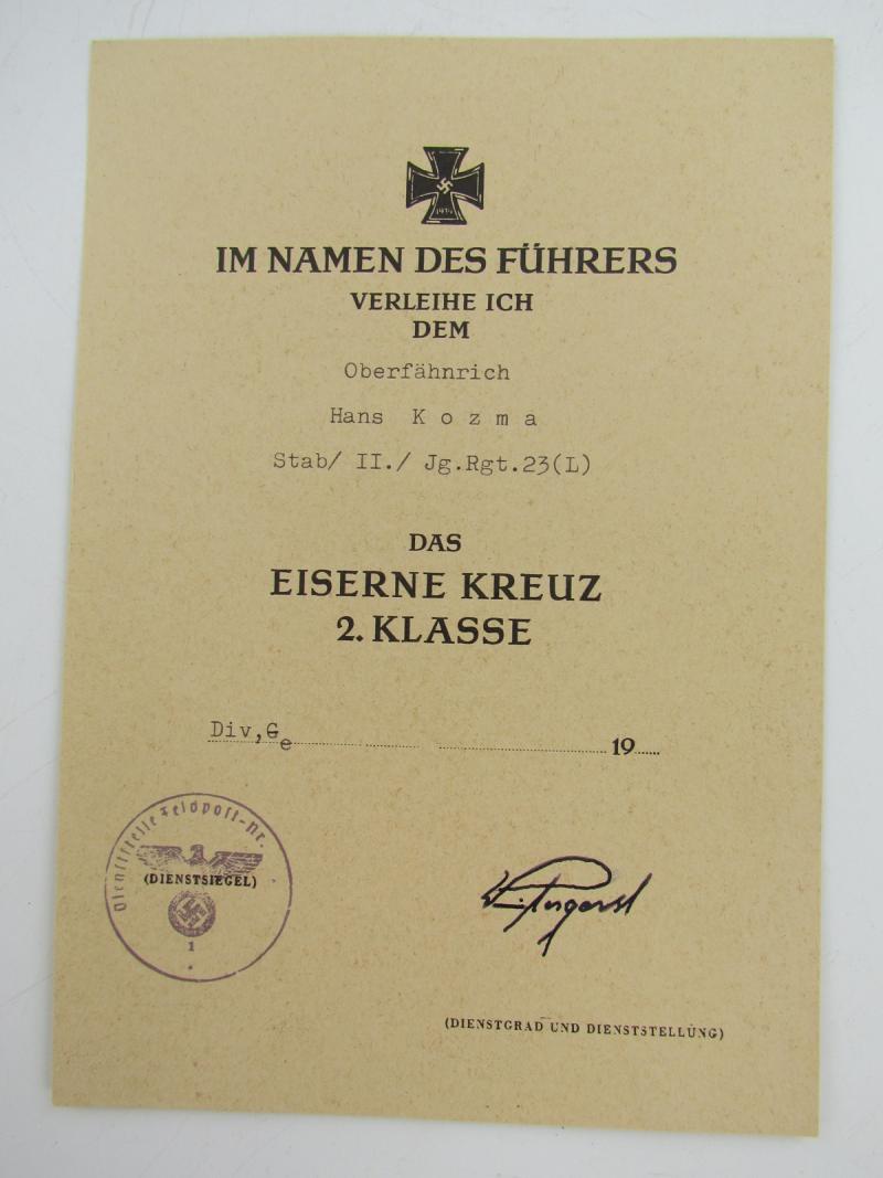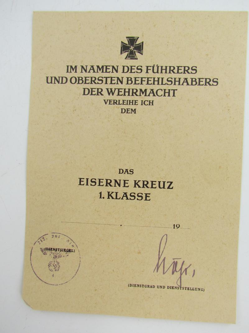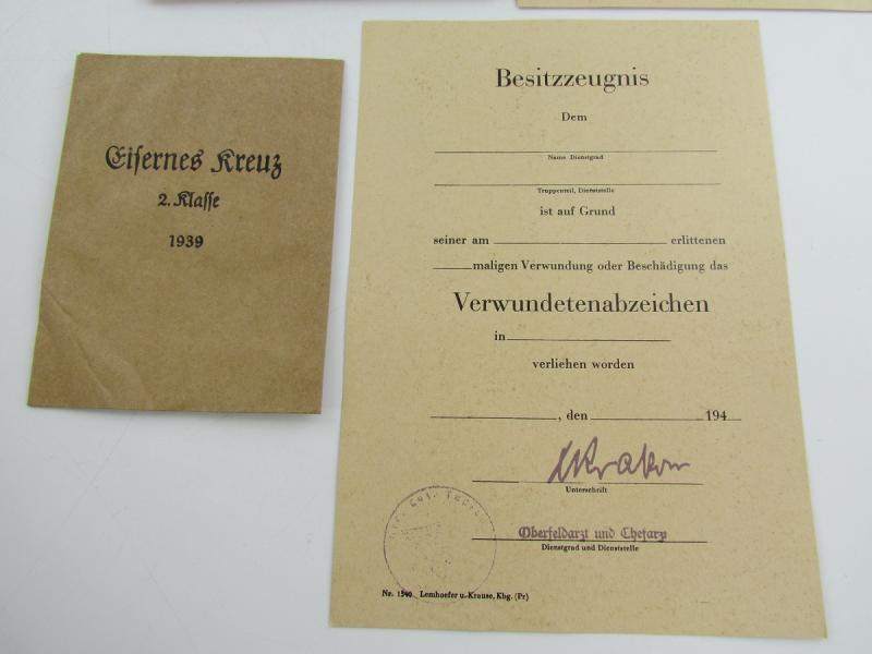 EK1 Award document unissued VWA Award document unissued EK2 document that is not completely filled in, probably due to a type error ? EK2 Award bag Very nice for any award collection