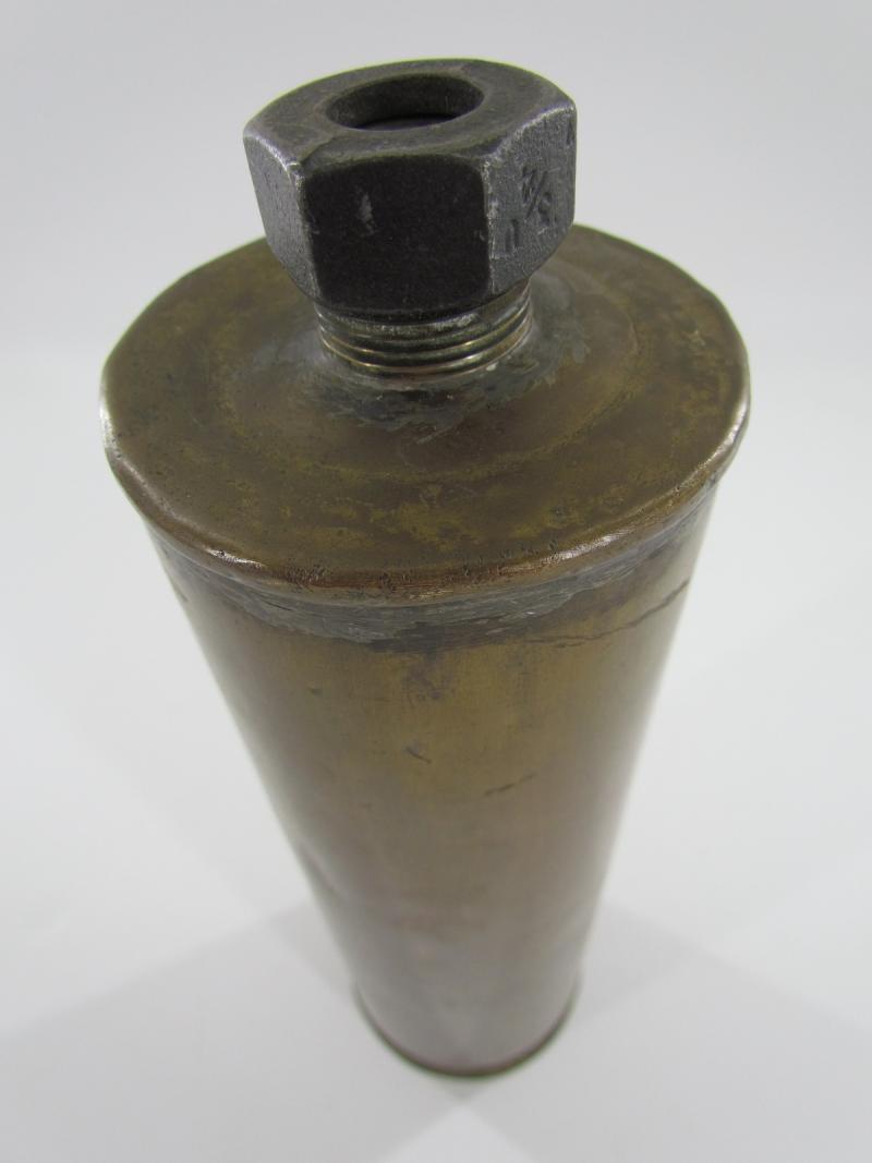 75mm M18 Shell Shell converted to a reservoir for a liquid ? This brass shell case is in very good condition