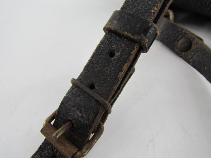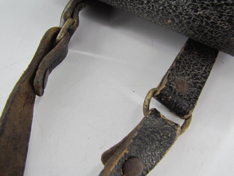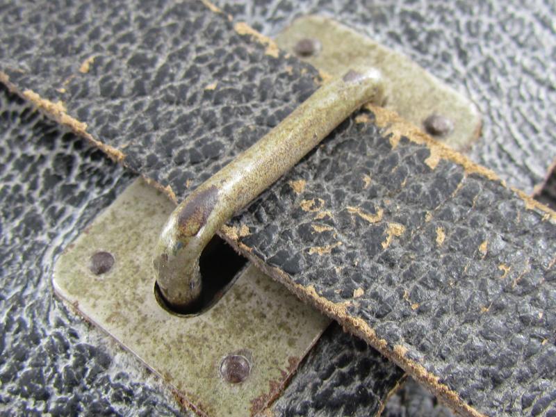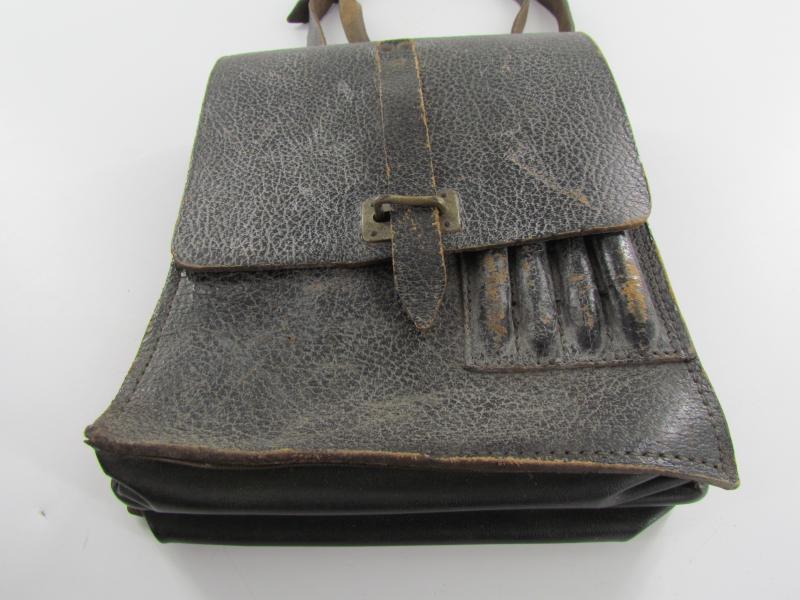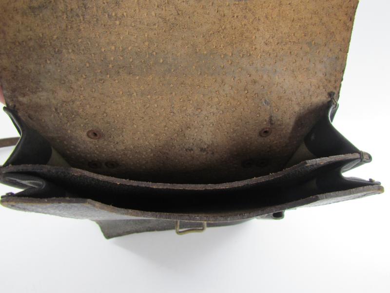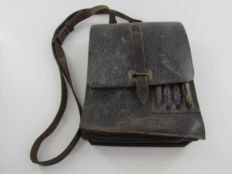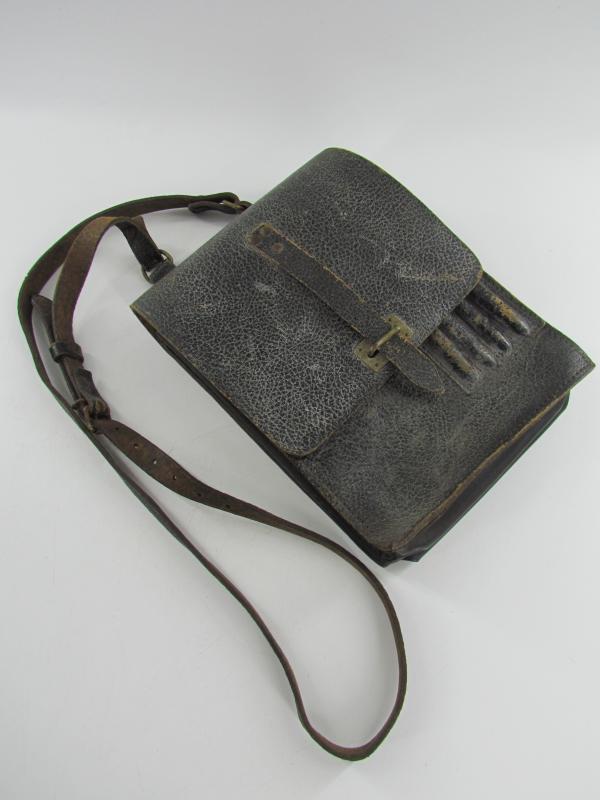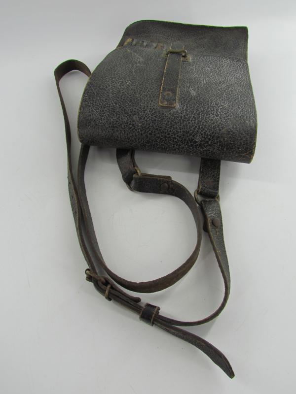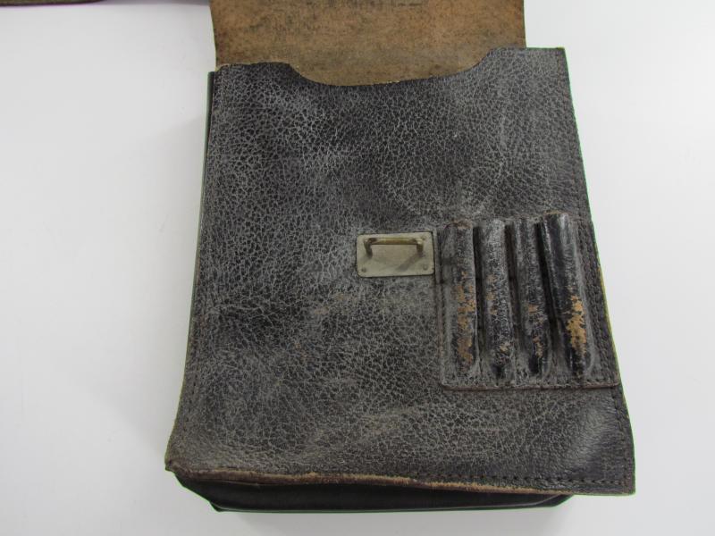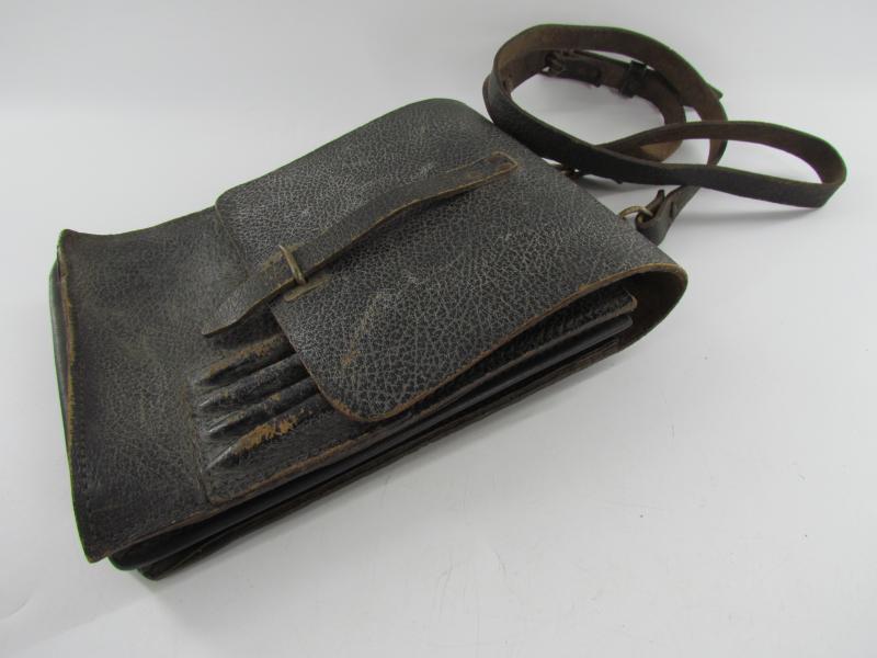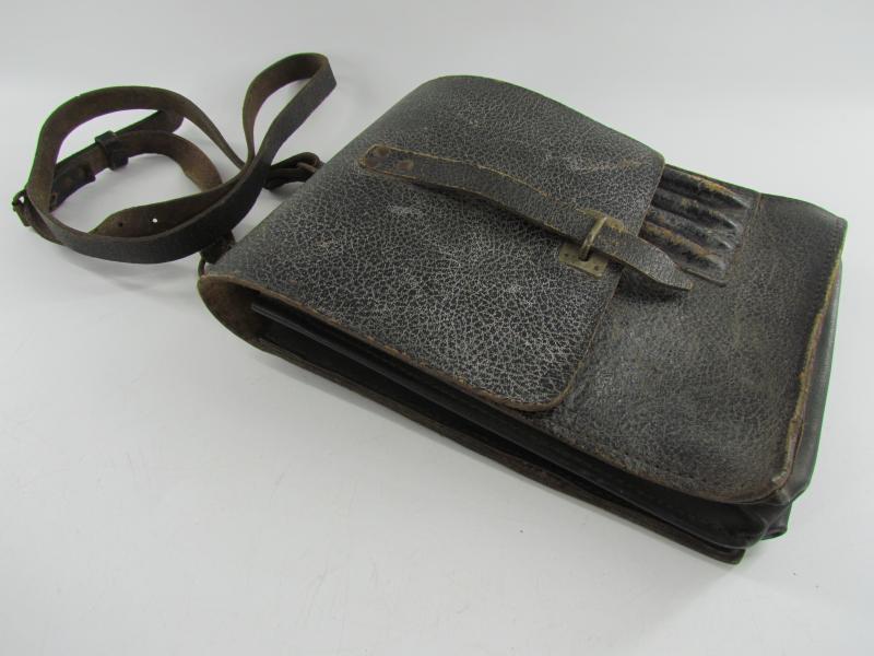 A very nice and not commonly seen late war map case with shoulderstrap Maker marked 1945 Wehrmacht Heer or Waffen SS Map case- Meldetasche. Black pebbled leather