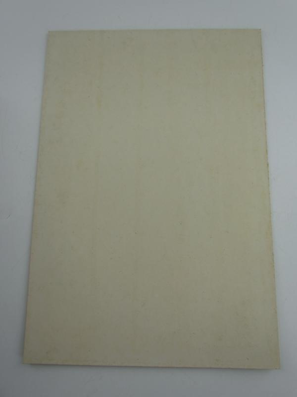 large-format decorative page from the Führer and Reich Chancellor with facsimile signature "Adolf Hitler" and embossed national eagle; Letter of transmission for the jewelry sheet dated Oktober 25, 1937; large-format decorative page from the Württemberg Prime Minister Christian Mergenthaler, issued in Stuttgart on Oktober 25, 1937 with a very nice ink signature " Mergenthaler ", with an embossed national eagle; Attached is a very large leaflet "Stay with us, because it's getting to be evening. - For the golden wedding anniversary of the Württemberg state government". The colored art print sheet is in a sturdy cardboard mat measuring 39.5 x 46 cm,