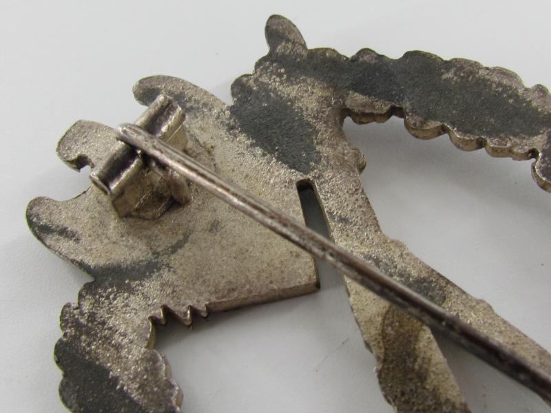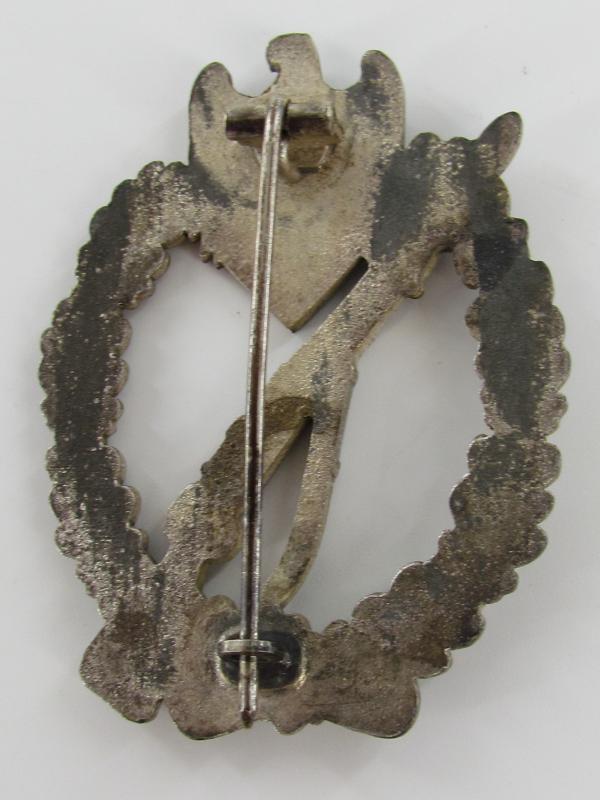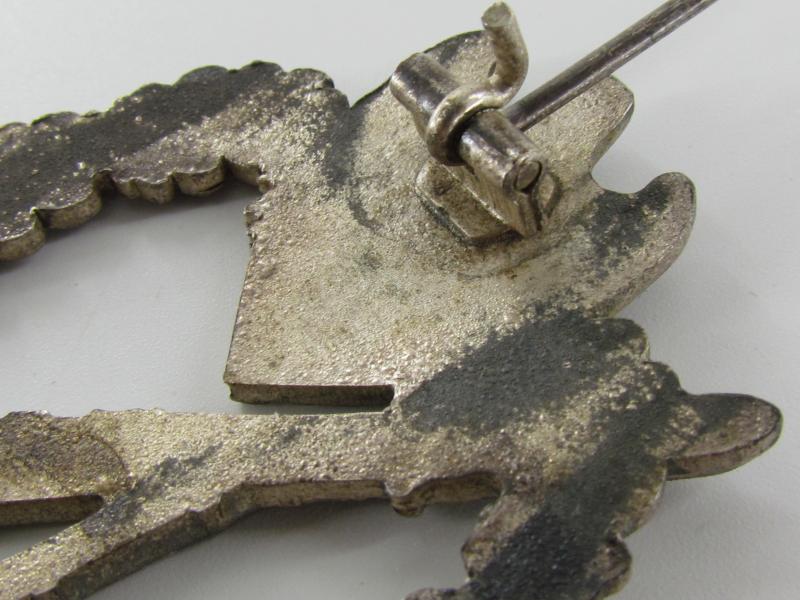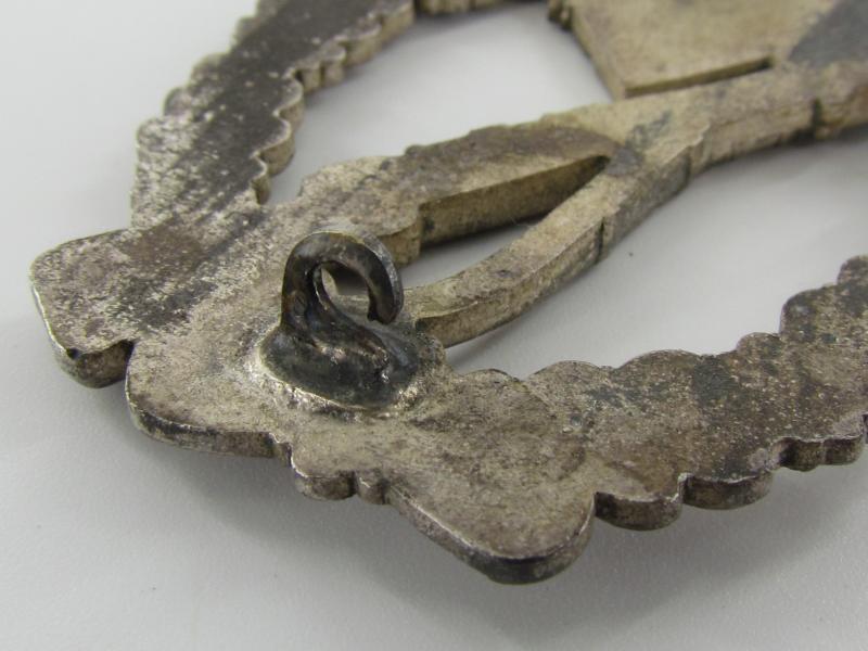 Infantry Assault Badge in Silver (Infanterie Sturmabzeichen in Silber) The badge is not visible maker marked most of its original silverish finish ist still remaining
