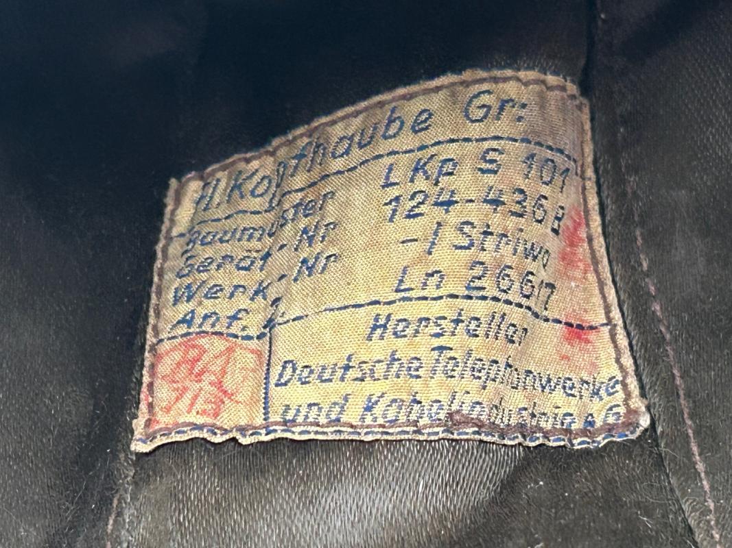 The 'LKpS101' Summer Flight Helmet model flight helmet was designed for summer wear and was outfitted with radio equipment as used by fighter pilots and bomber commanders, these were mostly used by fighter pilots.