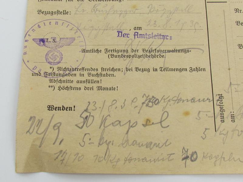 Purchase certificate for shooting supplies and explosives nice wehrmacht stamp on it