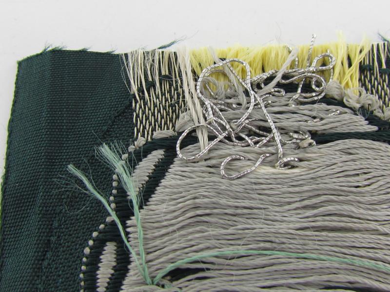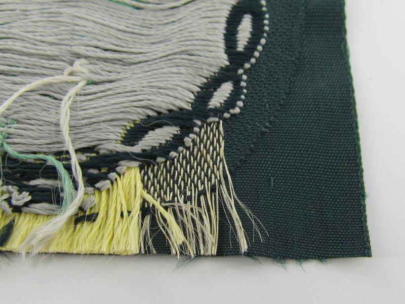The badge is executed in the so-called BeVo-weave style on a dark-green linnen background, showing the famous 'Edelweiss' flower.