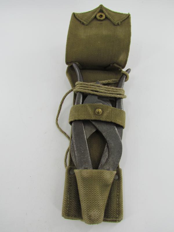Very nice British WW2 pliers in original blancoed webbing pouch.