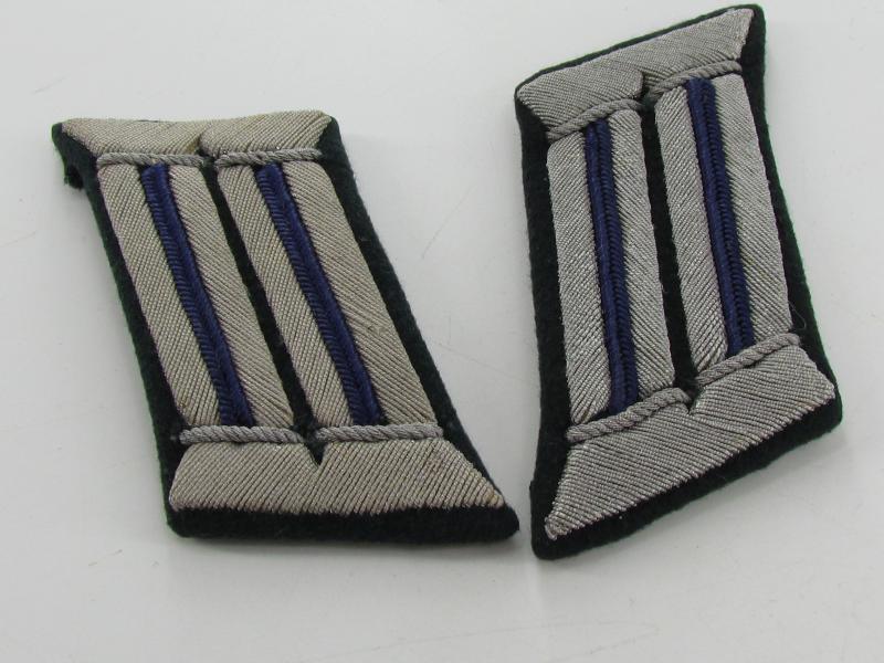 Army (Heer) medical officer collar tabs for ‘Arzt’ Blue piped tabs with silver embroidered bullion thread in a very good condition