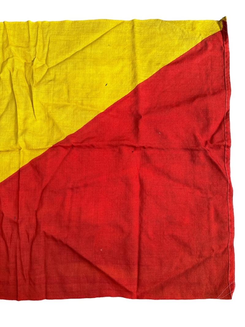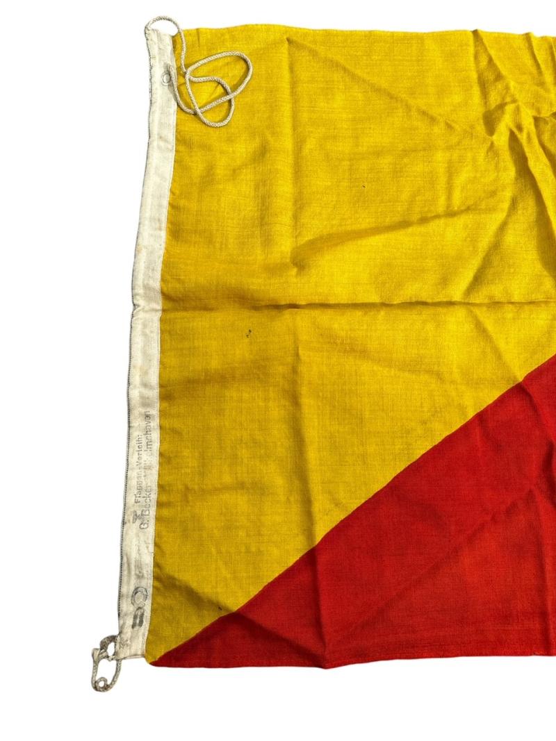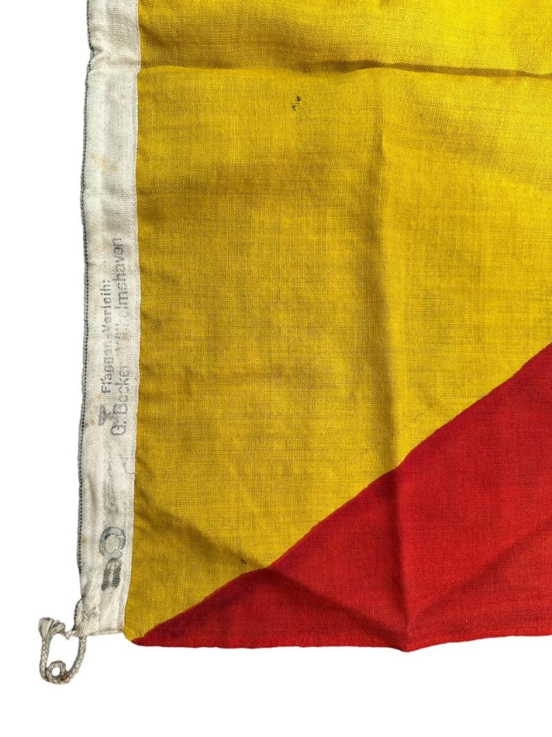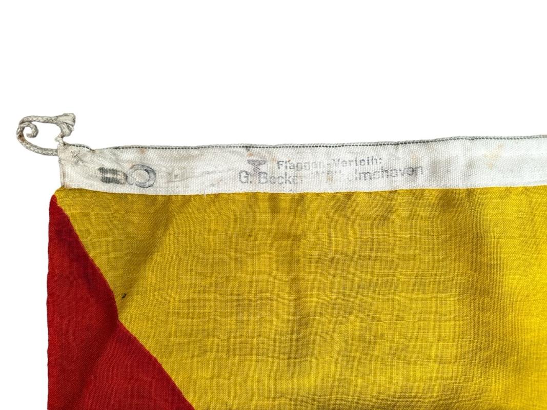 international Ships Signal Flag Nice used ship signal flag “Wimpel” Letter : O ( Oscar ) Nicely stamped The flag is in good used condition showing some small (moth)damages and staining, see photos