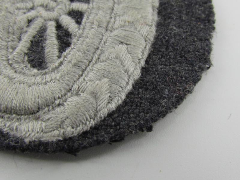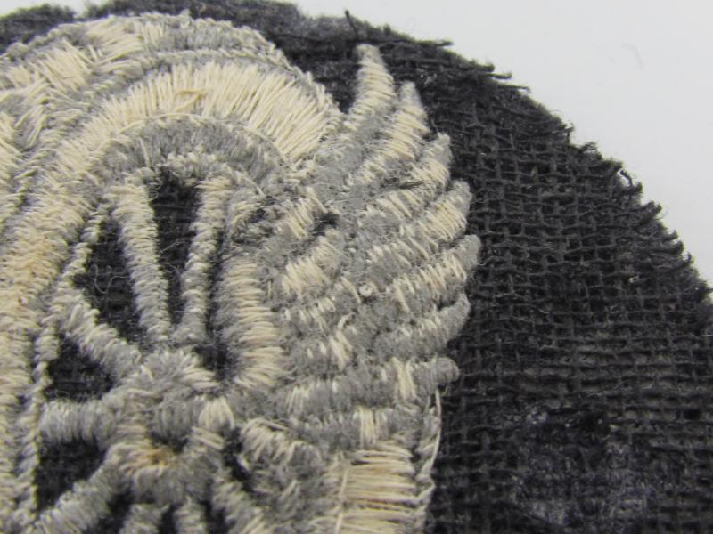 The patch shows a detailed 'winged wheel' and is executed in silver-greyish-coloured linnen on a typical LW-type- (and smooth-woolen-based) background