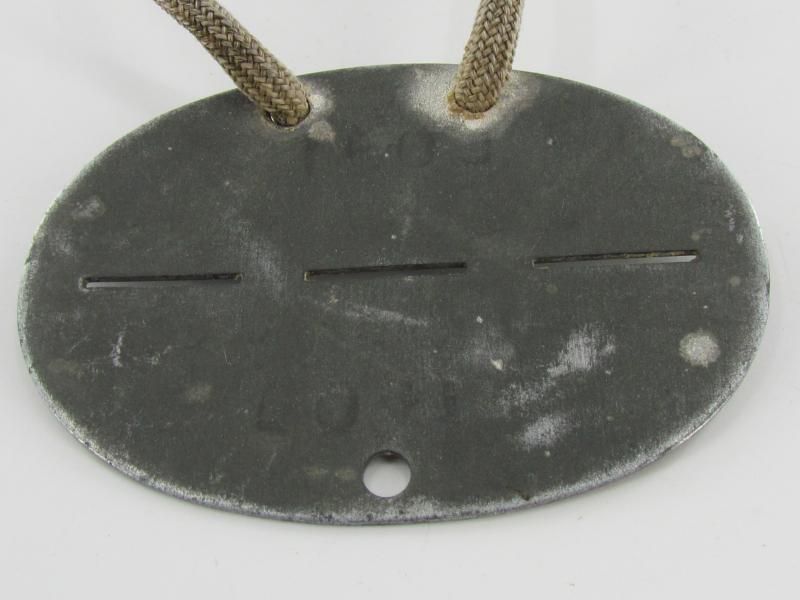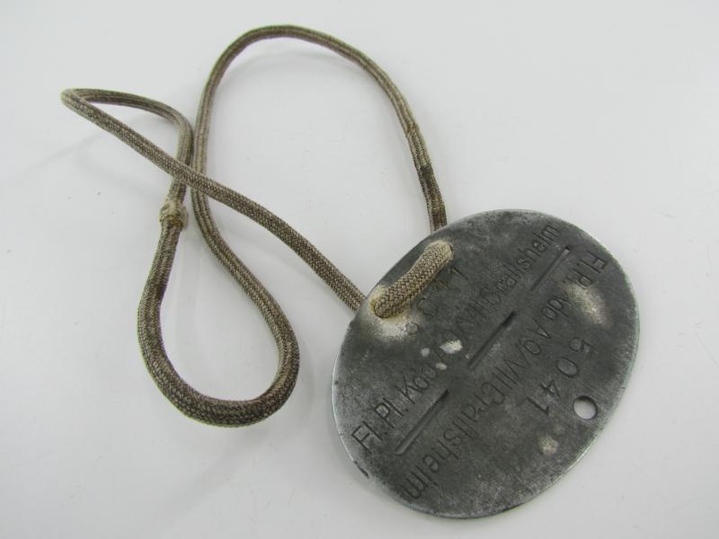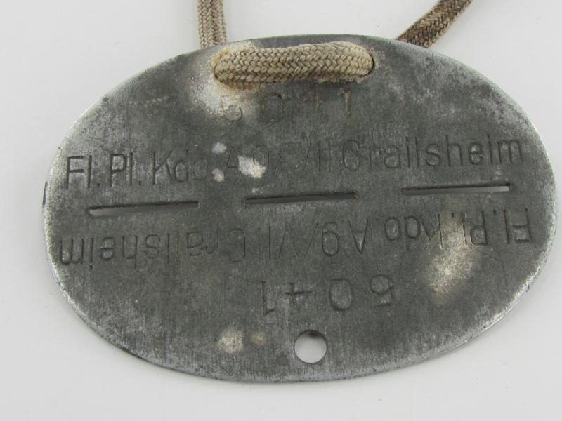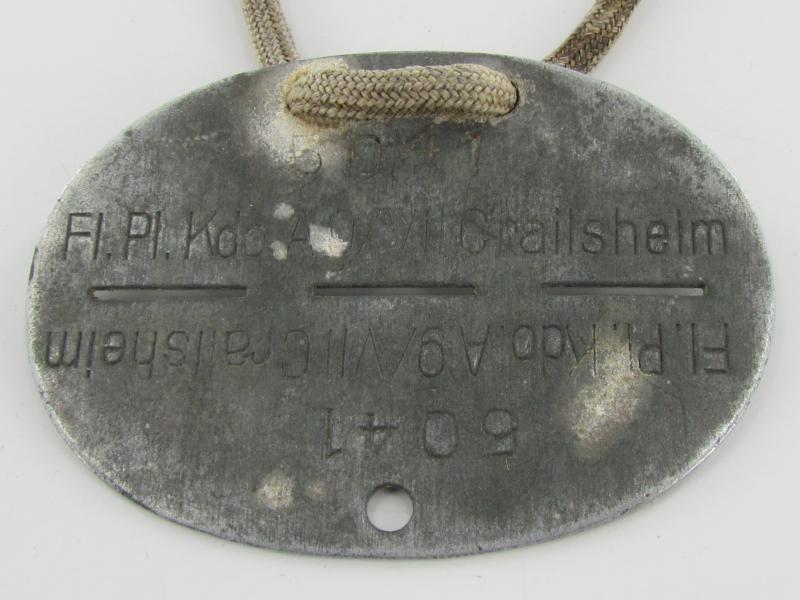 a very nice Luftwaffe dog tag ( EKM ) Carrier number is 5041 and the stamp is Fl. Pl. Kdo. A9 VII Crailsheim (Airfield Command). in a very good condition