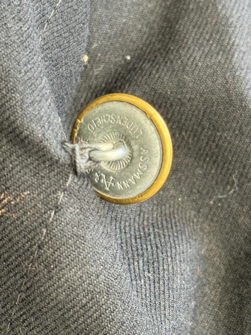 Has goldened buttons. Is completely lined with artificial black silk Is in almost new unissued condition.!!