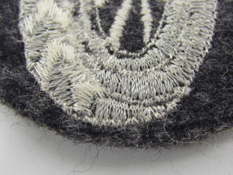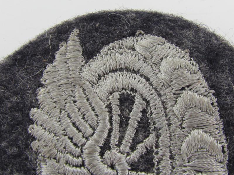 The patch shows a detailed 'winged wheel' and is executed in silver-greyish-coloured linnen on a typical LW-type- (and smooth-woolen-based) background