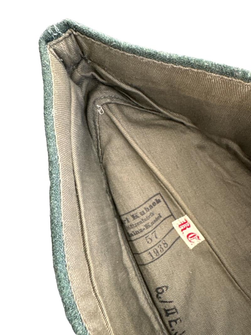 It is maker marked by Karl Kubach Mützenfabrik, Mainz-Kastel, dated 1938, size 57