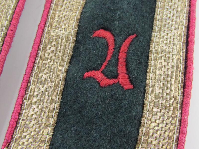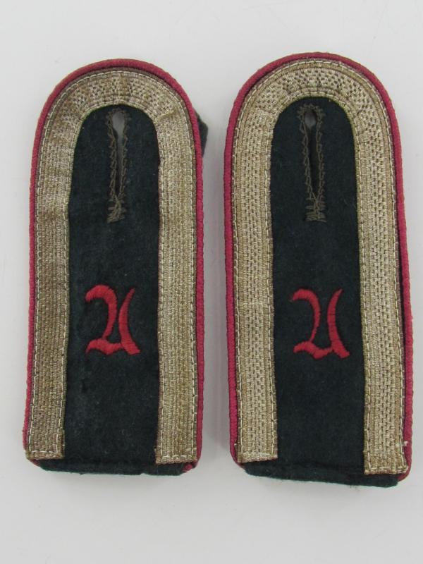 A set of Private purchased ( NCO) shoulder boards with darker-purple-red piping for an: 'Unteroffizier einer (Nebel)Werfer-Aufklärungs-Abts.' (or: junior-sergeant who served within an army reconnaisance smoke-troops unit)