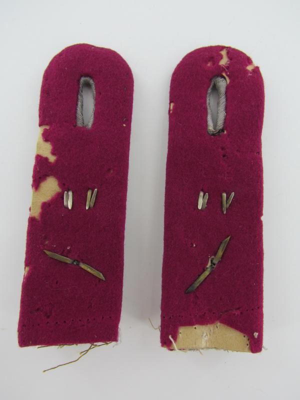 A set of purple piped sewn-in shoulder boards for an Oberleutnanteutnant in Nebelwerfer regiment 70 .