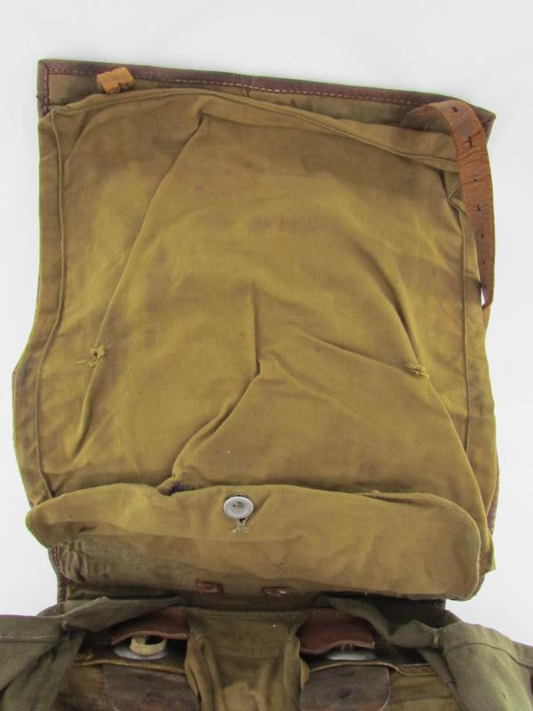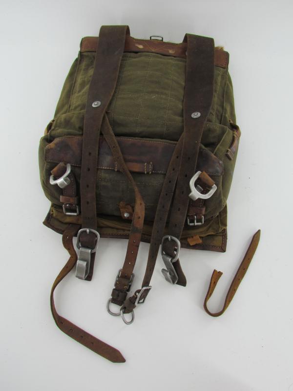 The cowhide was to protect against rain. The pack was worn hooked onto the belt supporting straps (Y-straps) which were introduced with the M1939 pack