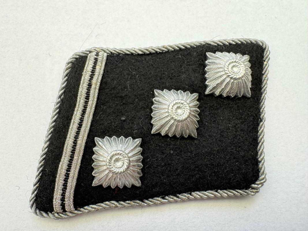 Rare and desirbale Waffen-SS officer collar tab set for a Obersturmführer (First lieutenant). The tabs show no wear and remain in excellent condition.