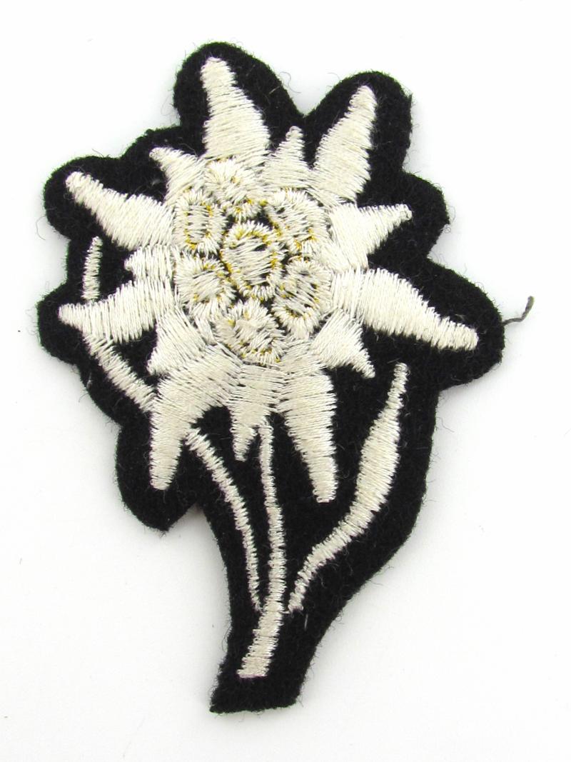 Waffen-SS mountain trooper ‘Gebirgsjäger’ Edelweiss cap badge o be worn on the SS mountain trooper field cap or Bergmütze unissued condition!