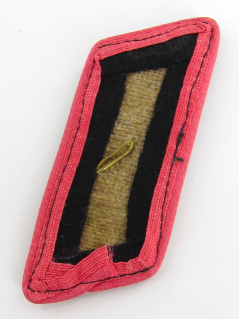 This is a scarce and simply very nice pair of WH (Heer) pink-piped 'Panzer' collar-tabs with attached matching metal (aluminium) skulls, as used on the black-coloured Panzer tunics.