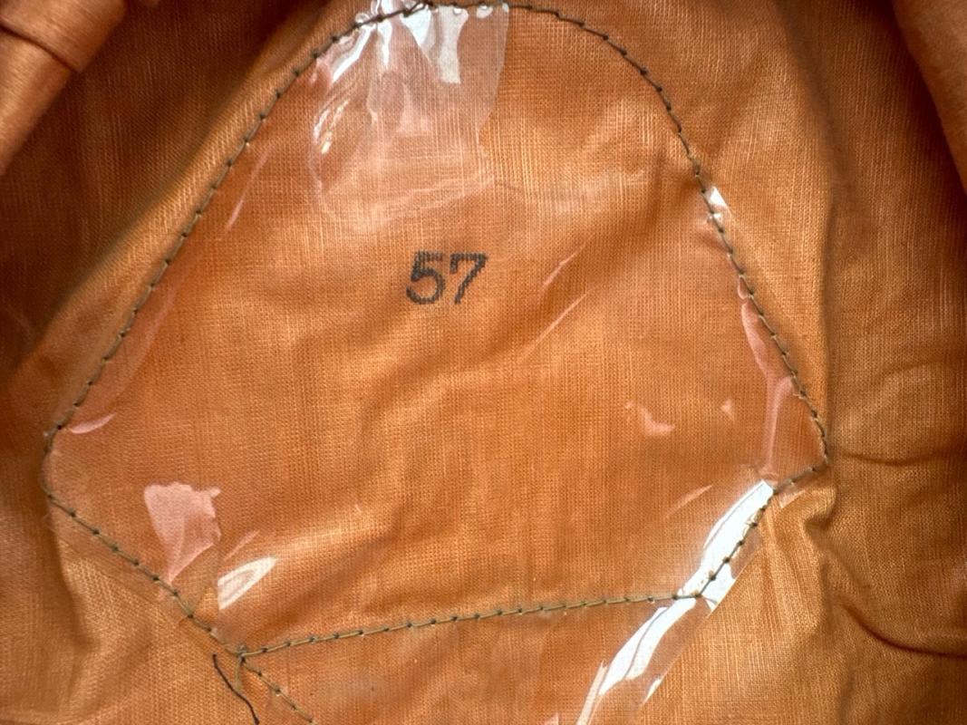 Very nice infantry visor for enlisted personnel. White infantry piping surrounds the cap. Complete with its original aluminum national insignia up front
