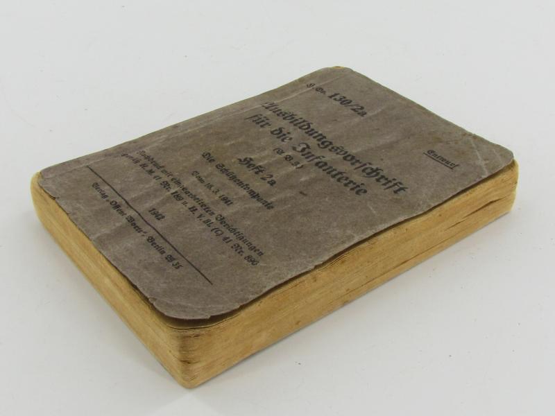 a German Wehrmacht Book Infantry Regulations (Ausbuildungsvorschrift fur die Infantrie) Part 2a. The book is dated 1942. about 15 x 10,5 cm in used but good condition