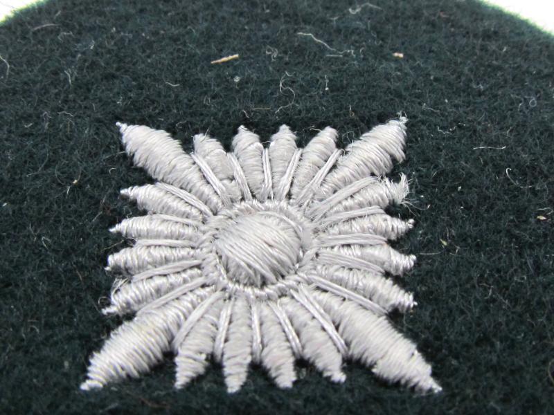 This is a nice Wehrmacht (Heer) rank-patch for an 'Oberschütze'. The patch is showing one machine-embroidered star on an M36 style darkgreen woolen background unissued condition