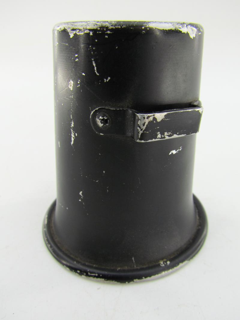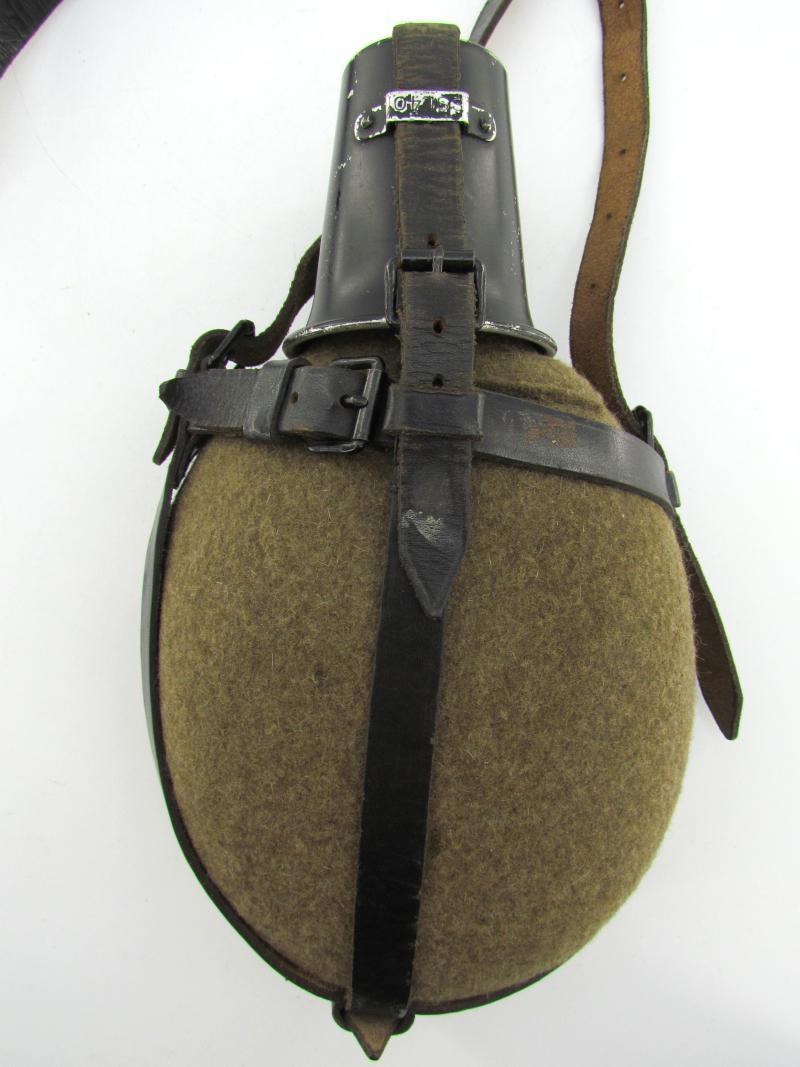 Beautiful German medical canteen, early construction with black leather straps, in overall excellent condition, black painted aluminum cup.