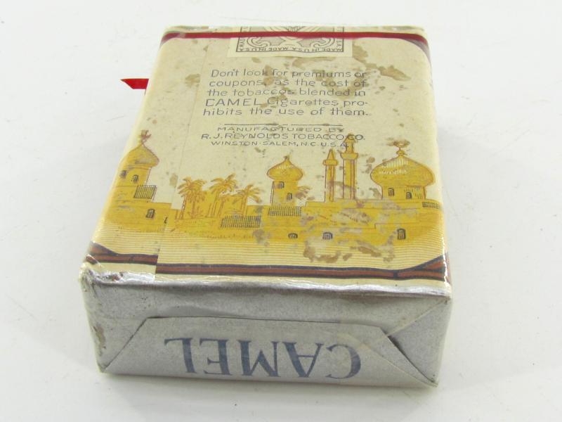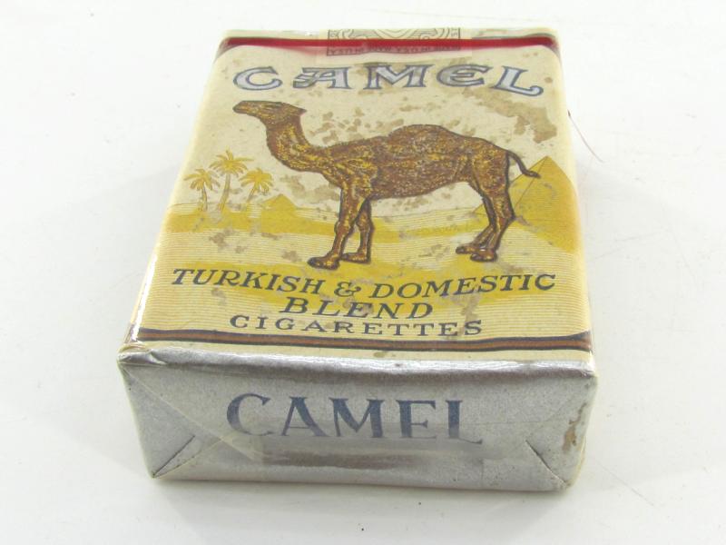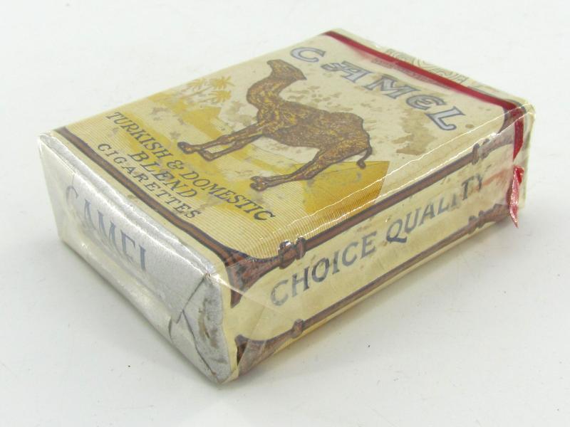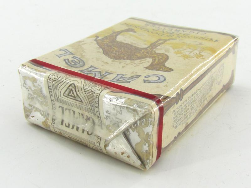 WW2-era Camel cigarettes as used by US soldiers during WW2. Nice decorative item. Unopened package.
