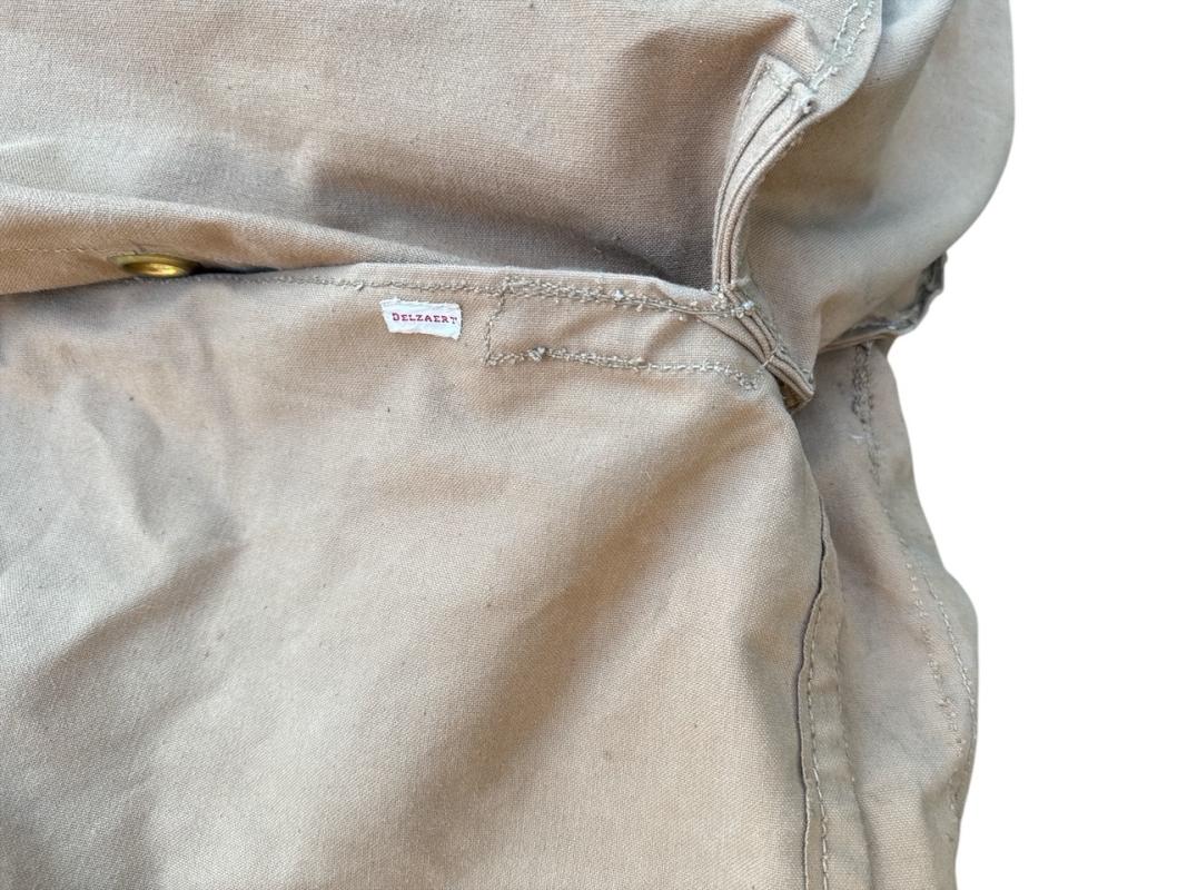 This was a canvas cover that an officer could put his blanket and pillow inside- this kept it protected from the rain, added an extra layer of warmth and allowed the bed to be rolled up with all the blankets securely inside. The cover is made of tan canvas