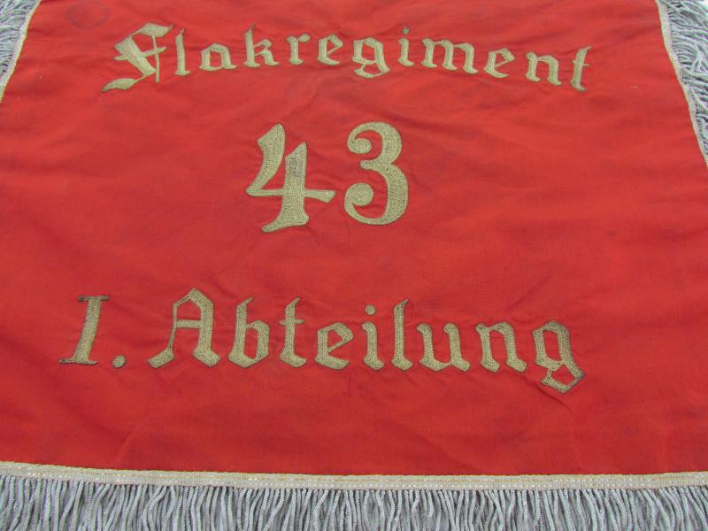 Flak Regiment 43 was formed in 1938 and saw extensive service in France, the Balkans, Sicily, North Africa (including El Alamein), and later on the Eastern Front in Kurland until the end of the war. Banners of this type were used in parades, ceremonies, and as prestigious unit standards.