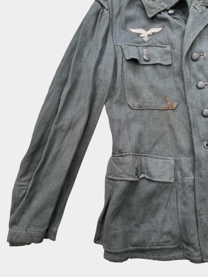 Luftwaffe "Drillich" (HBT - Herring Bone Twill) M43 combat Field Blouse (Feldbluse) for Field-Division troops.