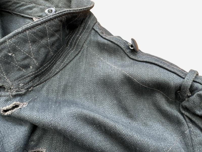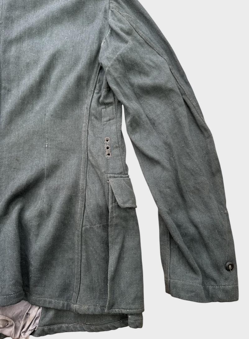 The field blouse is nicely size marked on the closure seam but hard to read and maker marked with an RB.Nr.