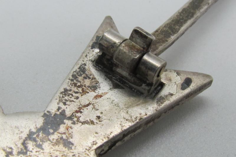 Unmarked example, with solid hinge, pin, and catch. Light age patina and wear consistent with period use. A very collectible and desirable decoration.
