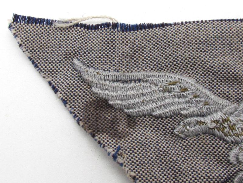 A Rare Luftwaffe breast eagle as worn on the light blue Luftwaffe shirt. Hard to find variant in good uniform removed condition!