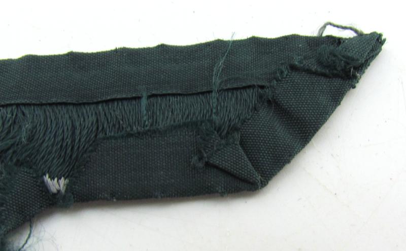 M36 pattern breast eagle. Flat woven ‘BeVo-weave’ example on dark green backing. Issued on all Heer tunics Uniform removed example.