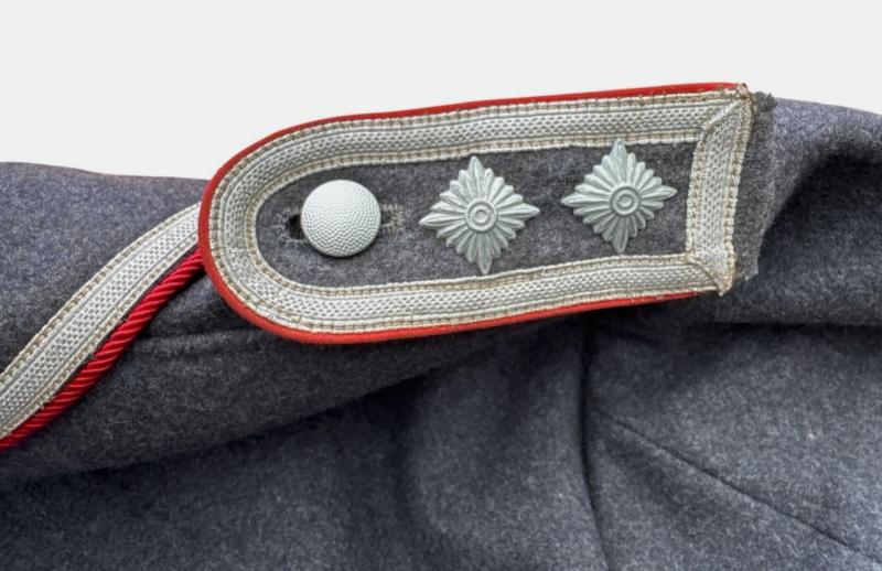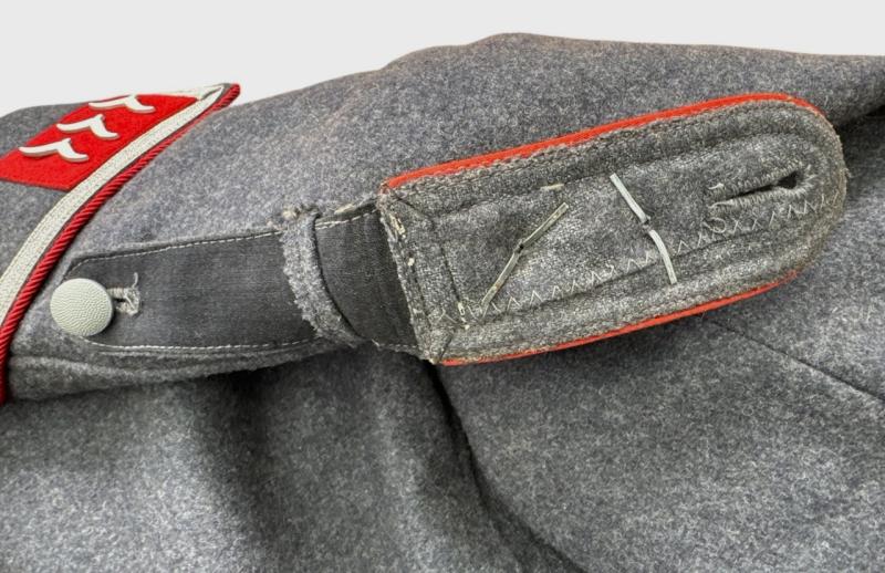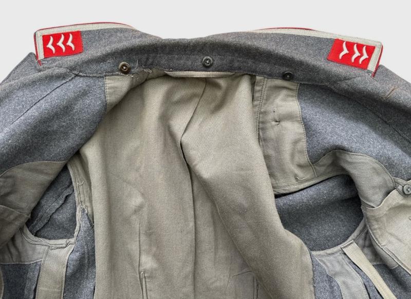 Constructed in fine wool, featuring red Waffenfarbe for Flak troops and an early-style collar trimmed with red branch-colour tresse.