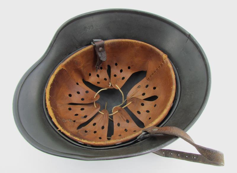 The helmet retains its factory-applied textured field-grey paint, with honest wear consistent with wartime use. Inside is the original M40 liner with untouched leather, named to the soldier “W. Kollmann”, adding a personal touch and extra collector appeal. The chinstrap is also original to the helmet, showing natural age and patina.