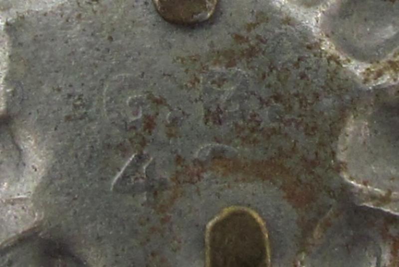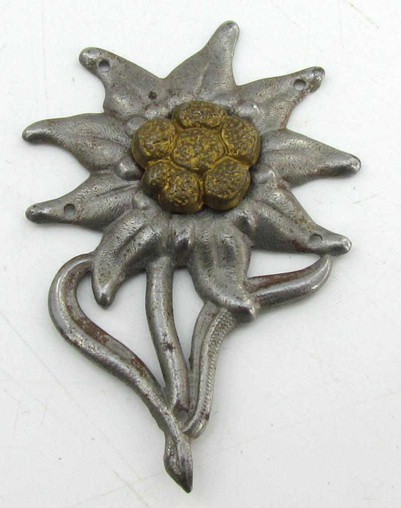 magnetic mountain trooper cap edelweiss to be worn on the side of the ‘Bergmütze’ or later the M43 cap. The badge remains in very good condition and is maker marked by G.B.42