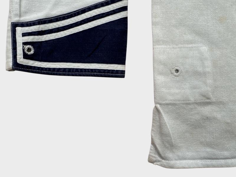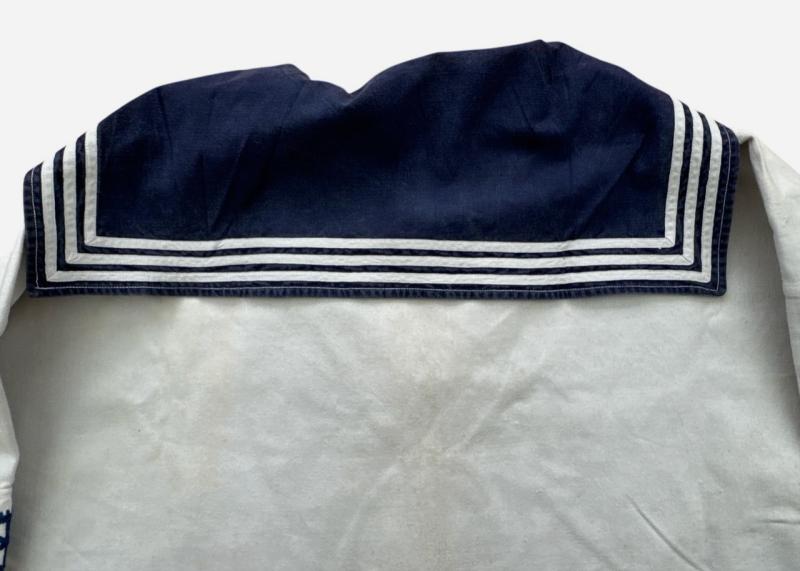 Very well preserved white KM sailor shirt, named and complete with original applied insignia. Excellent light worn condition. Acceptance stamp also present. ( 1936)