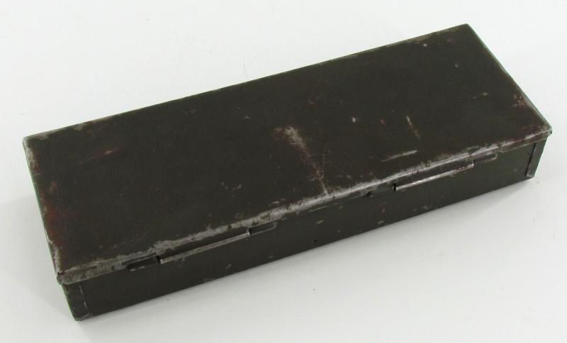 Metal case with hinged lid for small items for the MG 34 and MG42 Machine Gun See pictures for content In used but good condition Will only be shipped inside the EU