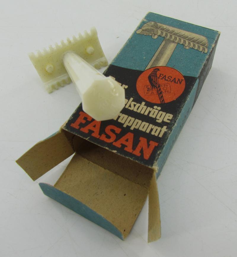 The razor comes in the original paper made box. A very nice razor as used by many German Soldiers. in a very good condition