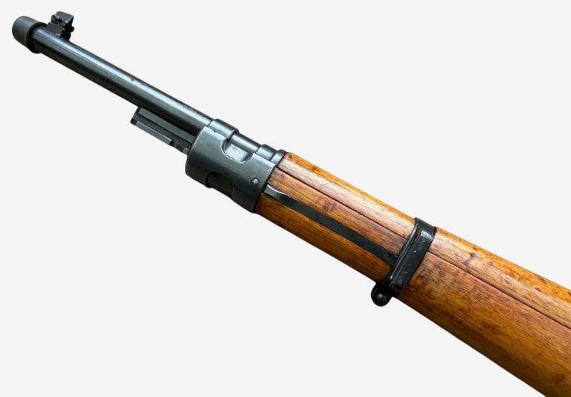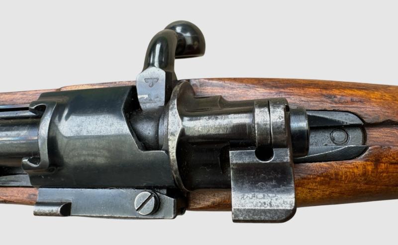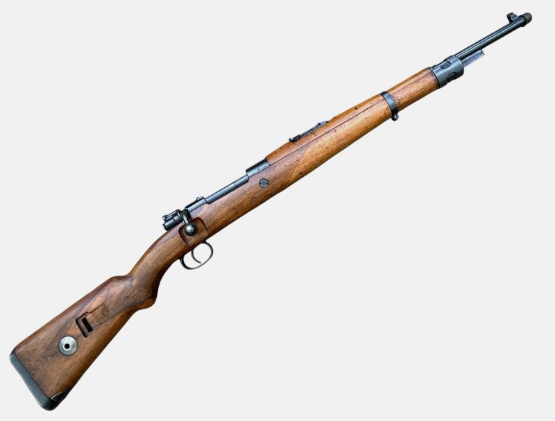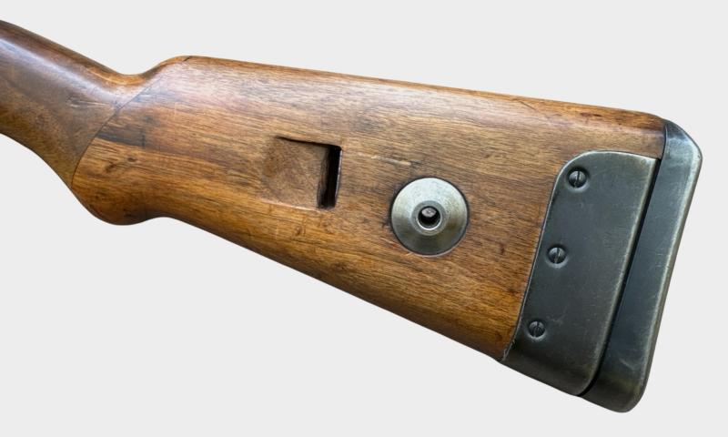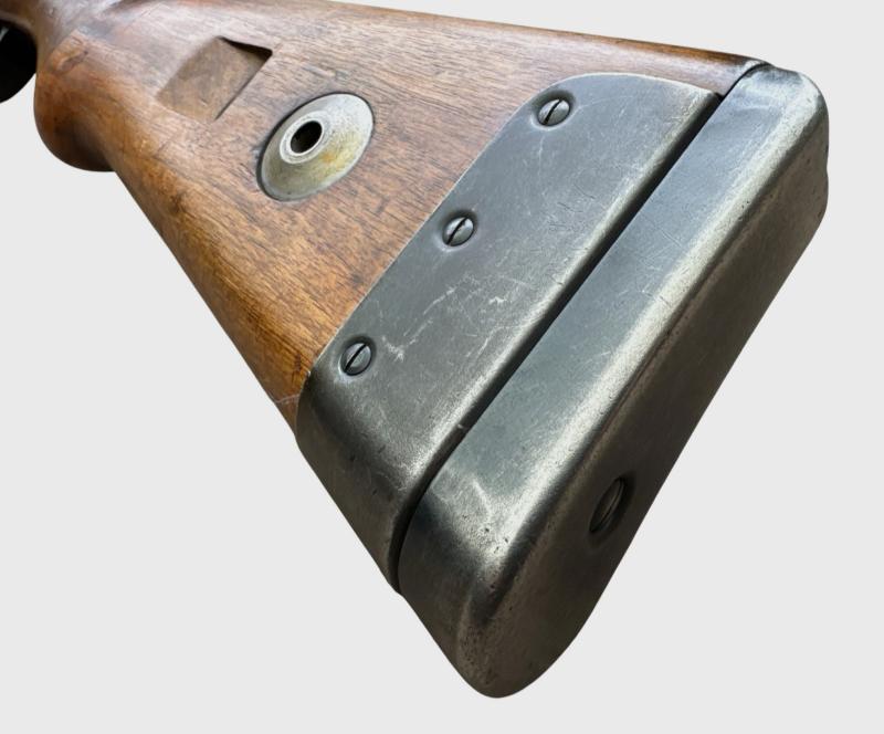 De G33/40 karabijn is speciaal ontworpen voor gebruik door berginfanterietroepen. Hoewel hij hetzelfde 7,92 mm kaliber gebruikt als de K98, verschilt hij aanzienlijk van de K98 door een opvallende metalen plaat aan de linkerachterkant van de kolf. Deze plaat diende ter bescherming tegen beschadiging in het veld, bijvoorbeeld bij gebruik als alpenstok, klimhulpmiddel of door ski- of sneeuwschoenen. De karabijn is ook aanzienlijk korter en heeft een andere houtbewerking, vizier en loopbanden. De grendel is lichter gemaakt en heeft een neerklapbare hendel. Deze karabijnen werden alleen geproduceerd in de Waffenbrik Brünn van 1940 tot 1942 en dragen het Waffen-keurmerk WaA63. Dit exemplaar heeft alle nummers die overeenkomen en de originele grendel! Een zeldzame vondst.
